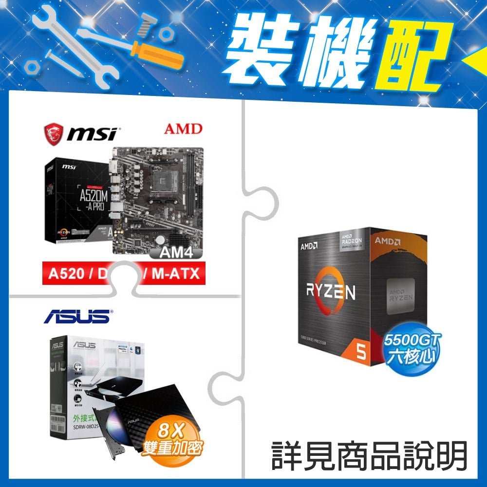 ☆裝機配★ AMD R5 5500GT+微星 A520M-A PRO M-ATX主機板+華碩 SDRW-08D2S-U 外接式燒錄機《黑》