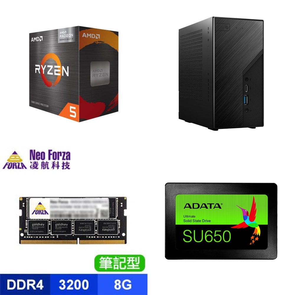 ☆期間限定★ AMD R5 5500GT+華擎Deskmini X300 Mini-STX準系統(含風扇)+凌航 NB DDR4-3200 8G 記憶體(X2)+威剛 SU650 240G SSD ★送Intel AX200 Wi-Fi 6 (Gig+) M.2無線網卡+華擎 DeskMini VESA 後背安裝支架