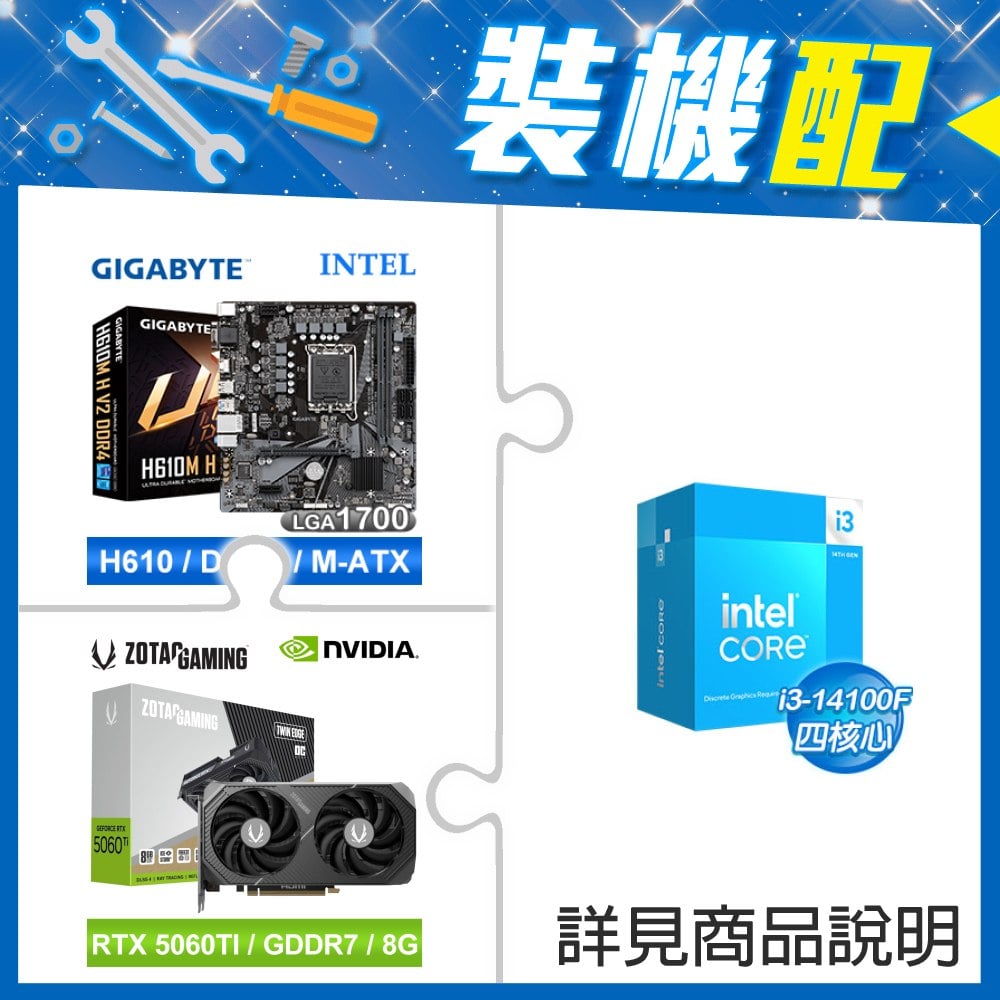 ☆裝機配★ i3-14100F+技嘉 H610M H V2 D4 MATX主機板+索泰 RTX 5060 TI 8GB Twin Edge OC 顯示卡