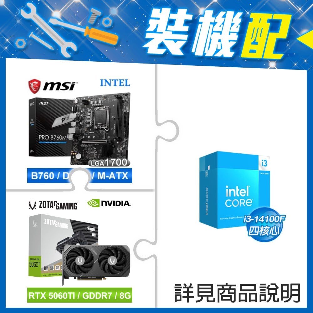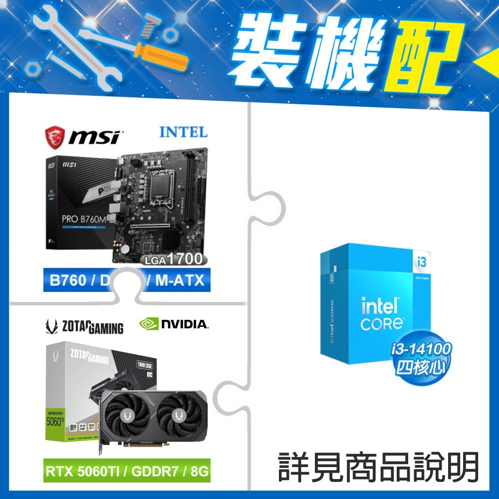 ☆裝機配★ i3-14100F+微星 PRO B760M-E D5 MATX主機板+索泰 RTX 5060 TI 8GB Twin Edge OC 顯示卡