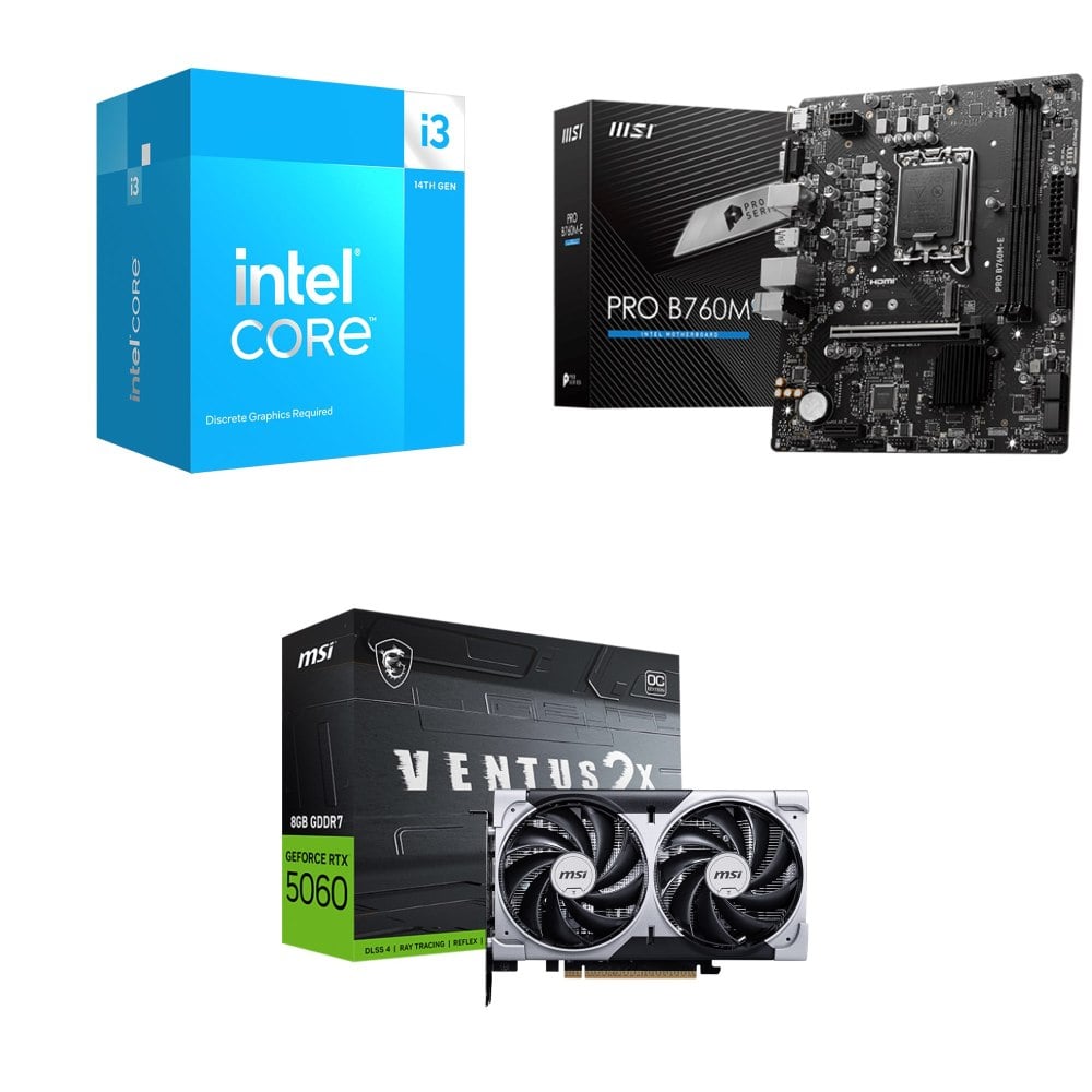 ☆期間限定★ i3-14100F+微星 PRO B760M-E D5 M-ATX主機板+微星 RTX 5060 8G VENTUS 2X OC 顯示卡