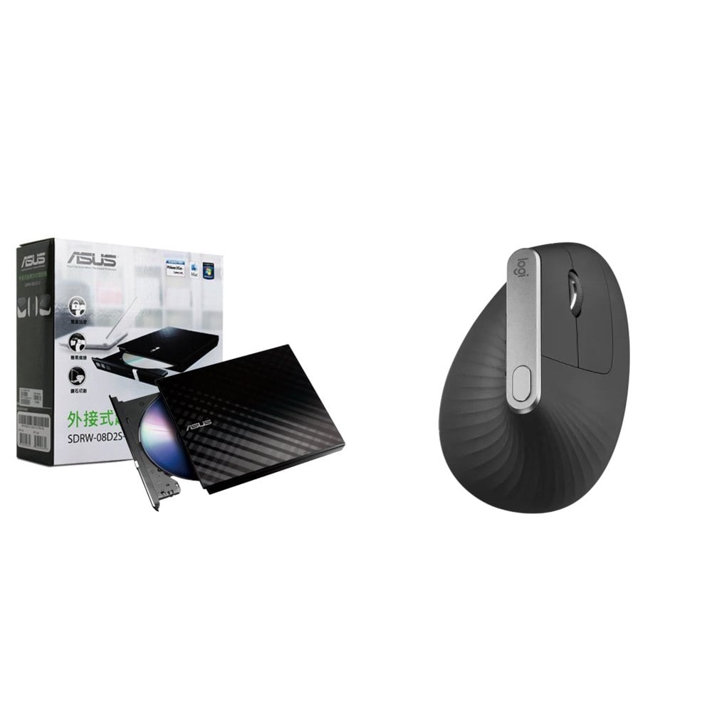 ☆期間限定★ 華碩 外接燒錄器《黑》(SDRW-08D2S-U)+羅技 MX Vertical 人體工學垂直滑鼠