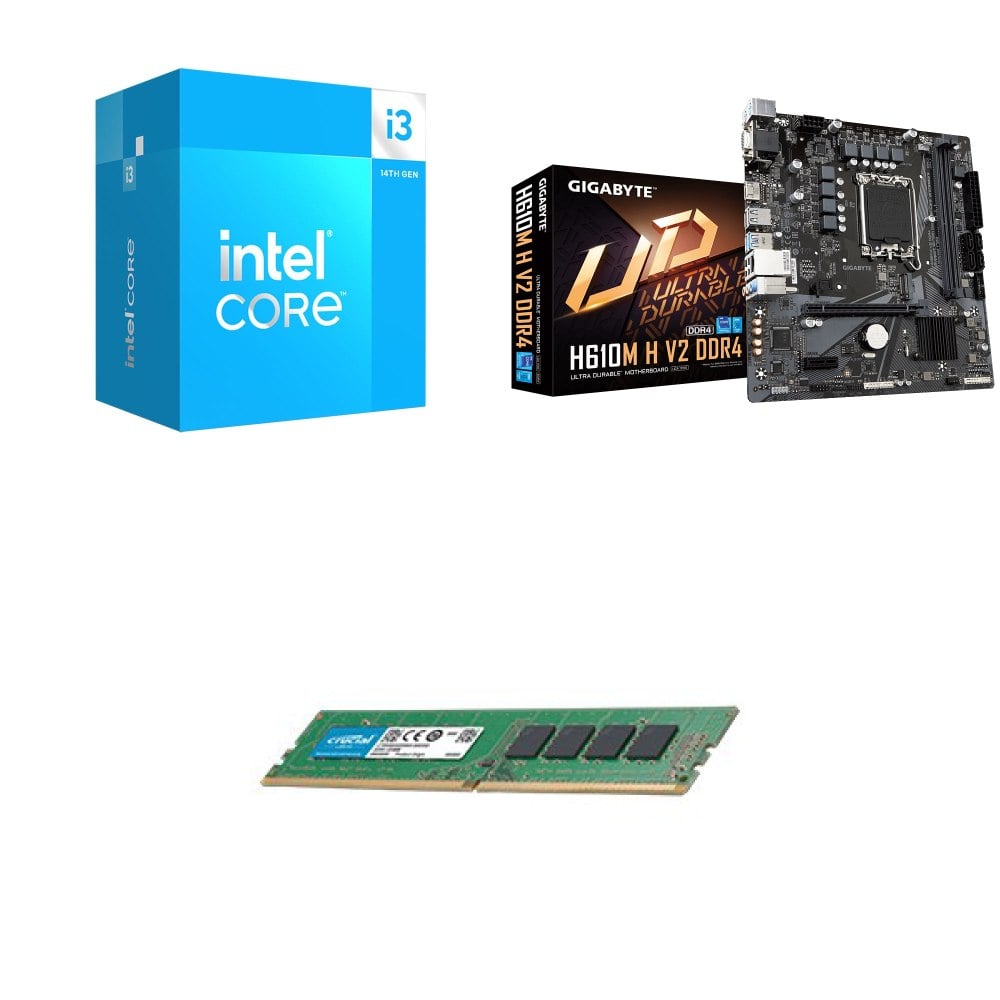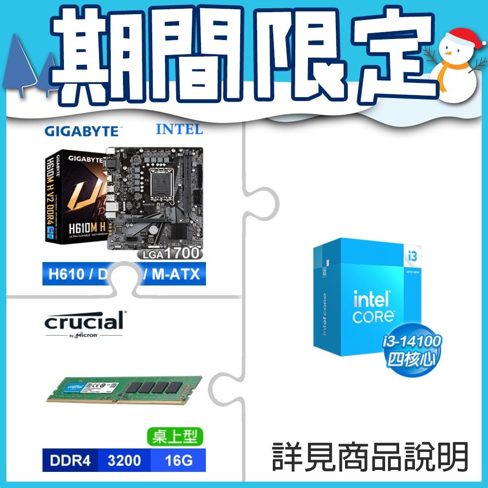 ☆期間限定★ i3-14100+技嘉 H610M H V2 D4 M-ATX主機板+美光 Crucial DDR4-3200 16G 記憶體(X2)
