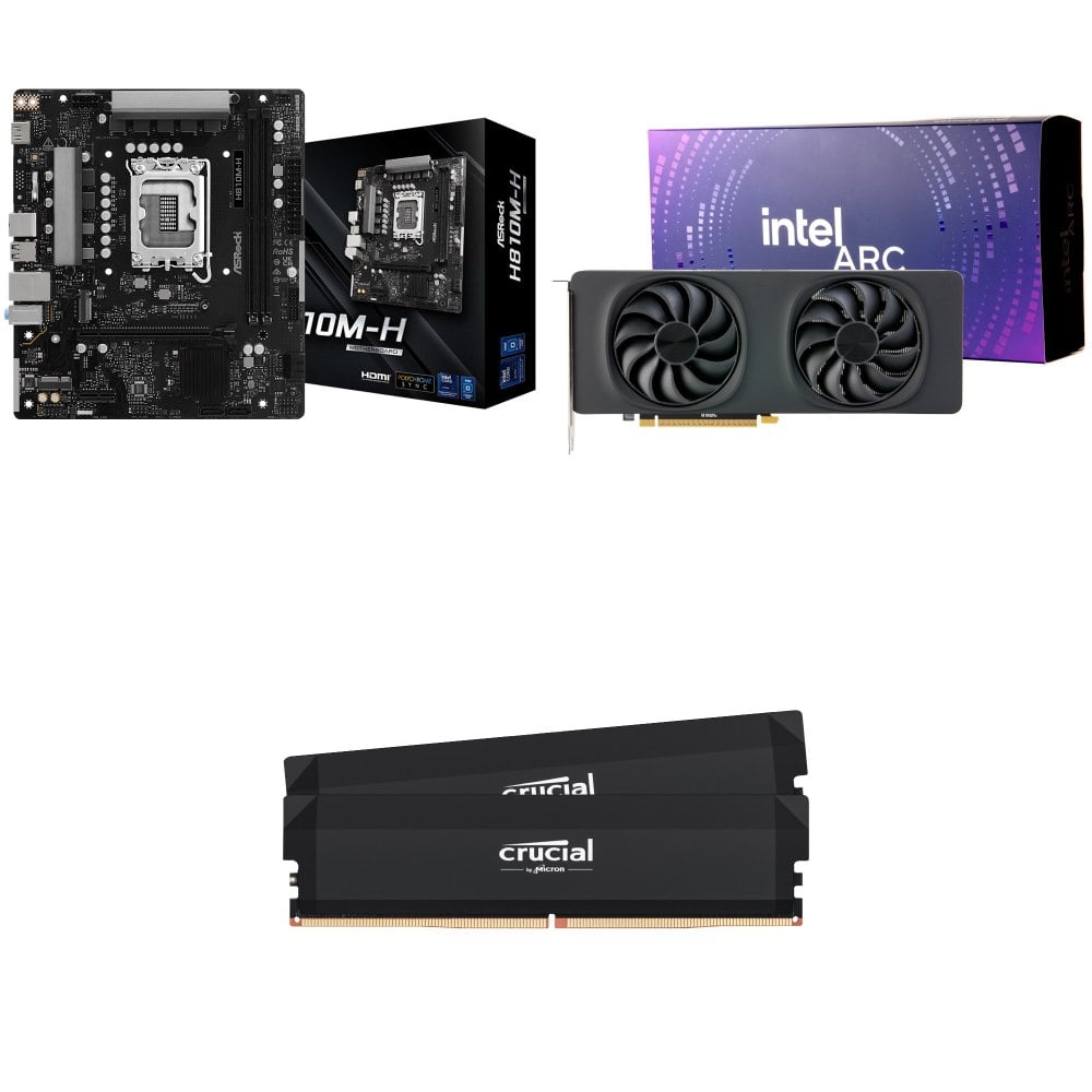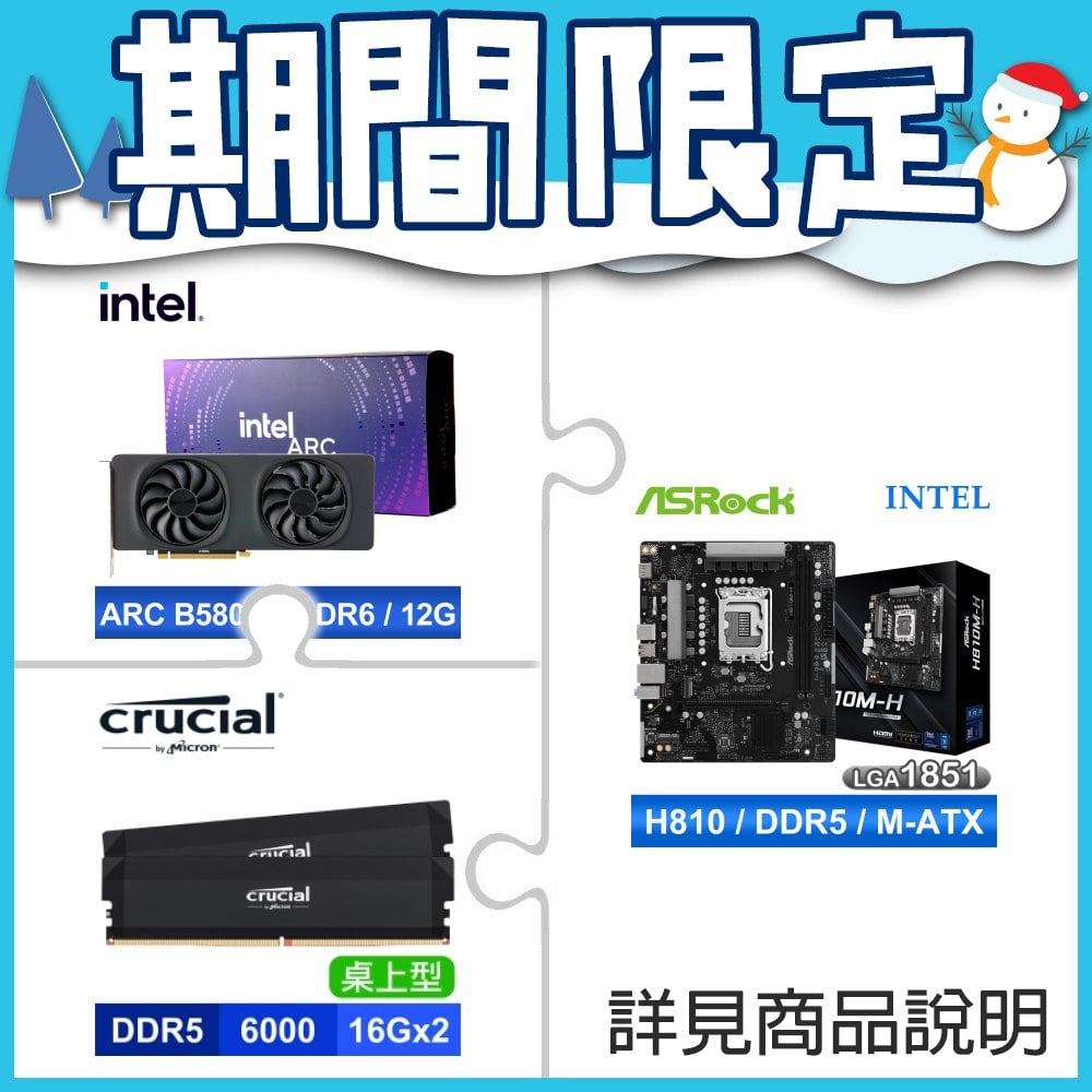 ☆期間限定★ 華擎 H810M-H MATX 主機板+Intel Arc B580 12G 20 Core 顯示卡+美光Crucial PRO DDR5-6000 16G*2黑 記憶體
