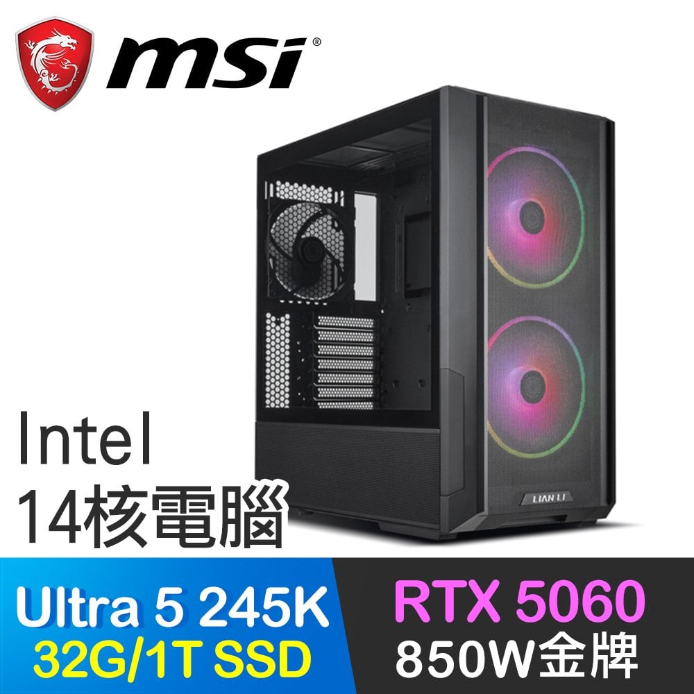 微星系列【焚天烈槍】Ultra5 245K 14核 RTX5060Ti 電腦主機(32G/1T SSD)