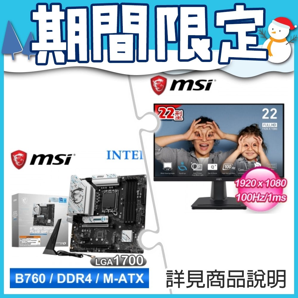 ☆期間限定★ 微星 PRO MP225V 21.45吋平面寬螢幕+微星 B760M GAMING PLUS WIFI D4 MATX 主機板