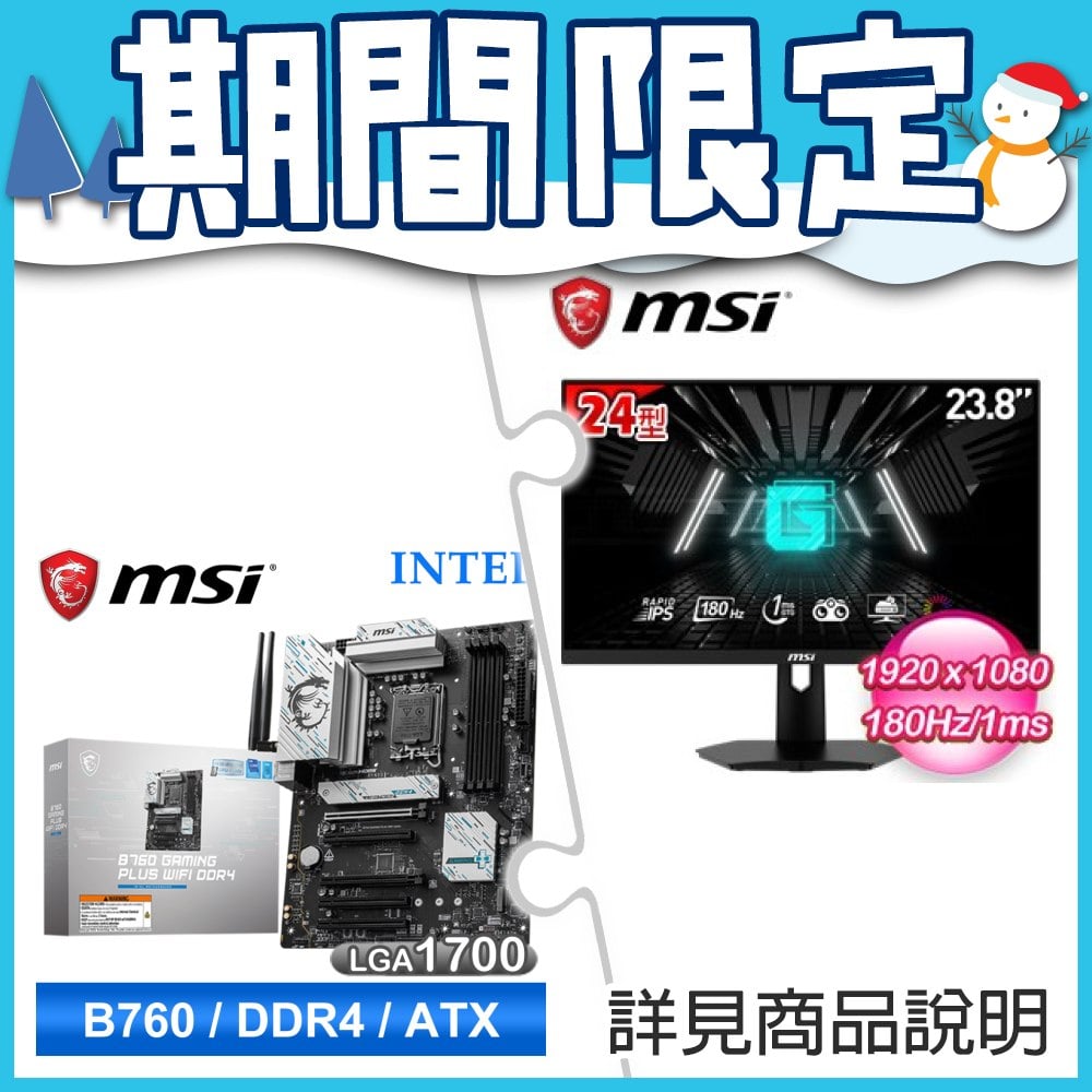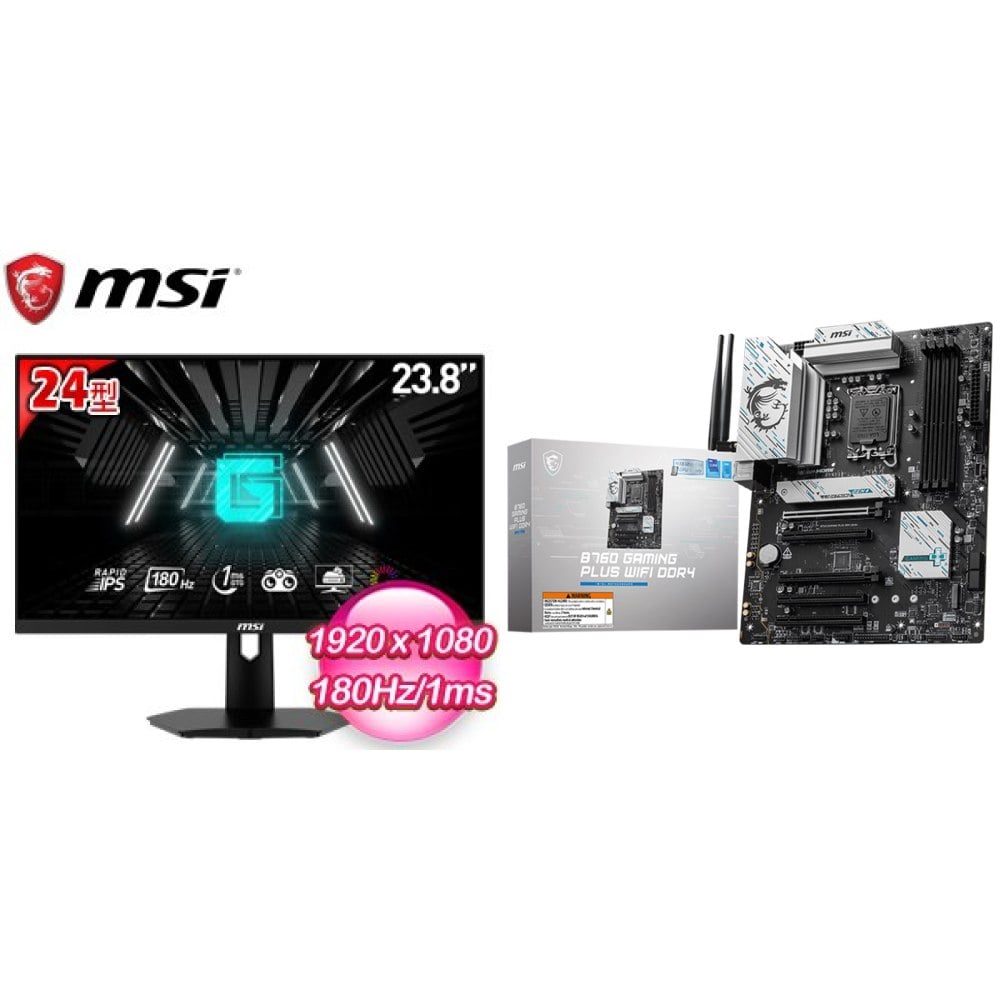 ☆期間限定★ 微星 G244F E2 24型 平面電競寬螢幕+微星 B760 GAMING PLUS WIFI D4 ATX 主機板