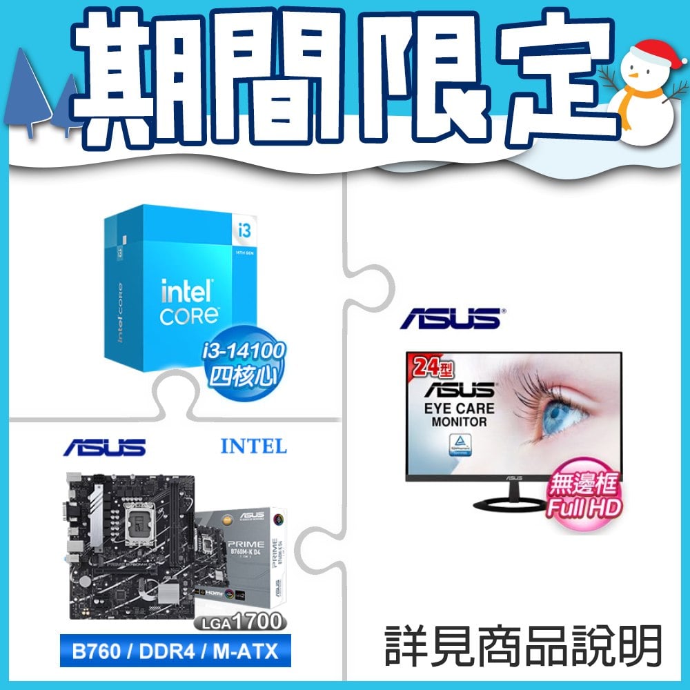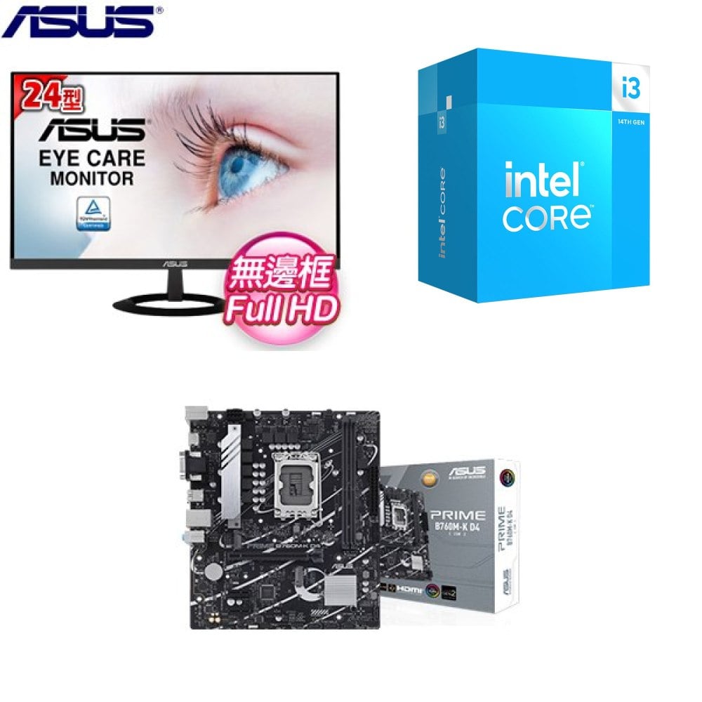 ☆期間限定★ 華碩 VZ249HE 24型 IPS 低藍光螢幕+i3-14100+華碩 PRIME B760M-K D4-CSM M-ATX主機板
