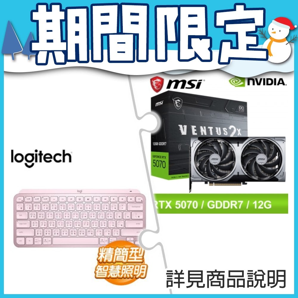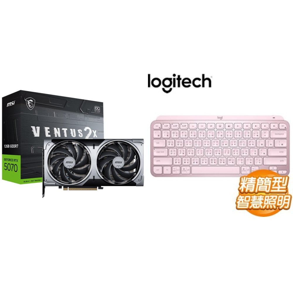 ☆期間限定★ 微星 RTX 5070 12G VENTUS 2X OC 顯示卡+羅技MX KEYS Mini無線藍芽背光鍵盤《玫瑰粉》