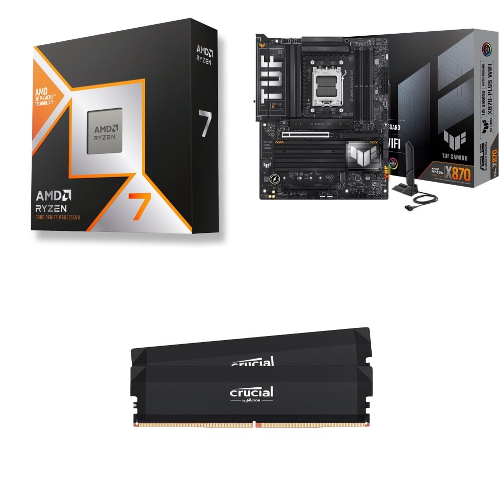 ☆期間限定★ AMD R7 9800X3D+華碩 TUF GAMING X870-PLUS WIFI ATX主機板+美光Crucial PRO DDR5-6000 16G*2黑 記憶體