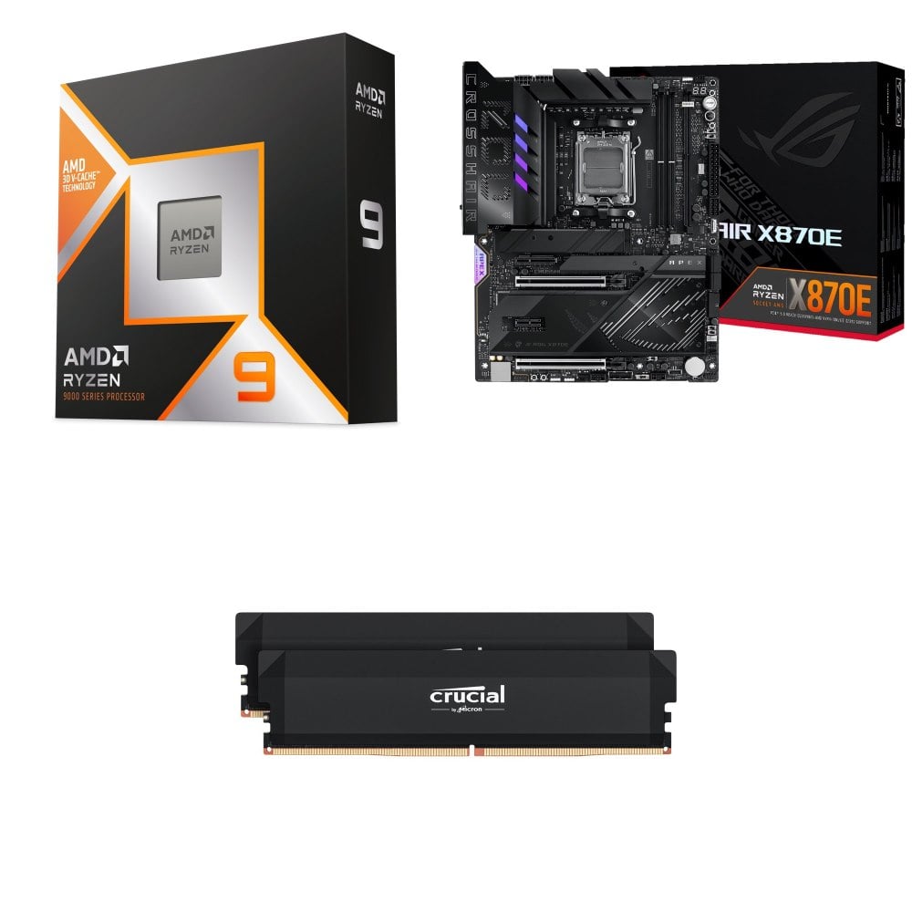 ☆期間限定★ AMD R9 9950X3D+華碩 ROG CROSSHAIR X870E APEX ATX主機板+美光 Crucial PRO DDR5 6400 64G (32G*2)黑 記憶體