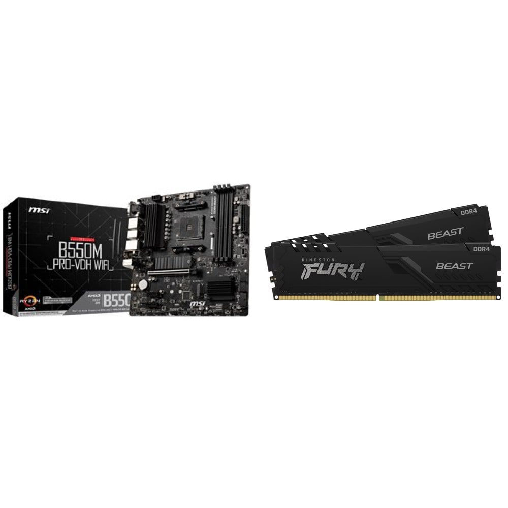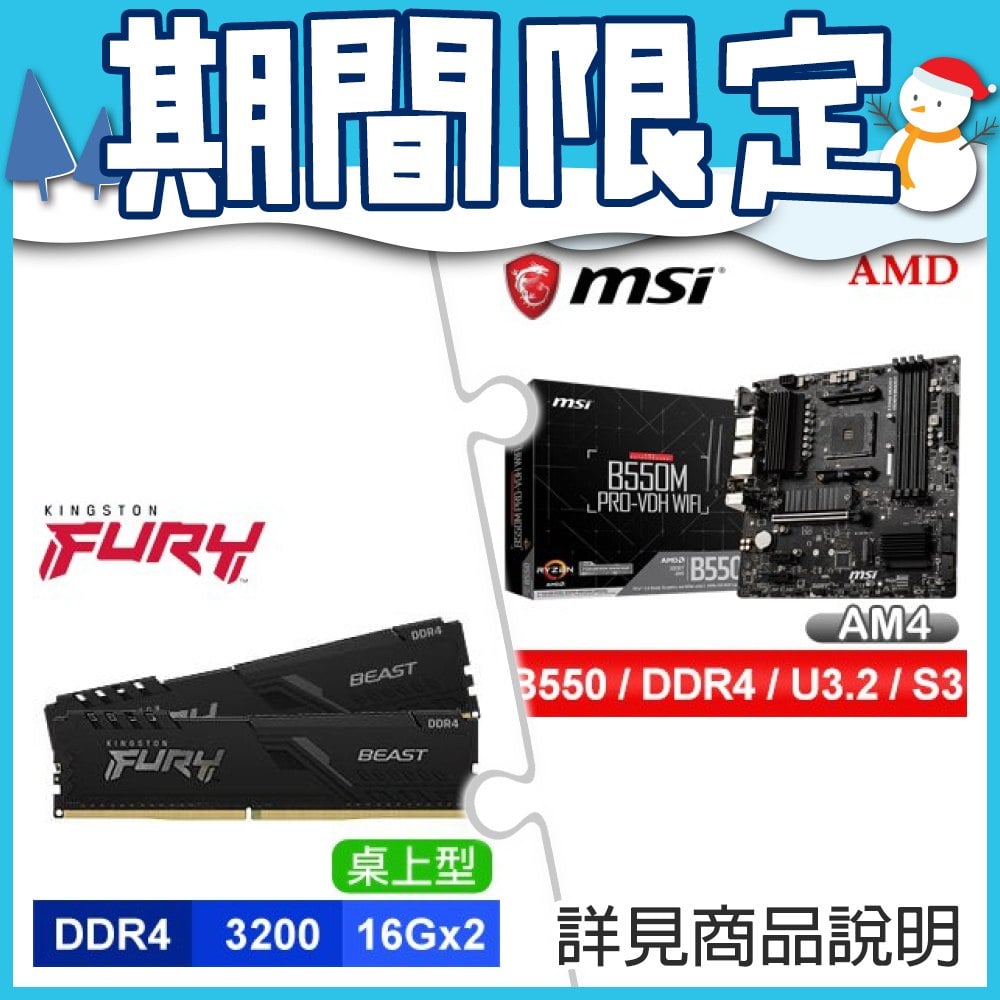 ☆期間限定★ 微星 B550M PRO-VDH WIFI M-ATX主機板+金士頓 獸獵者 D4-3200 16G*2 CL16 黑 記憶體