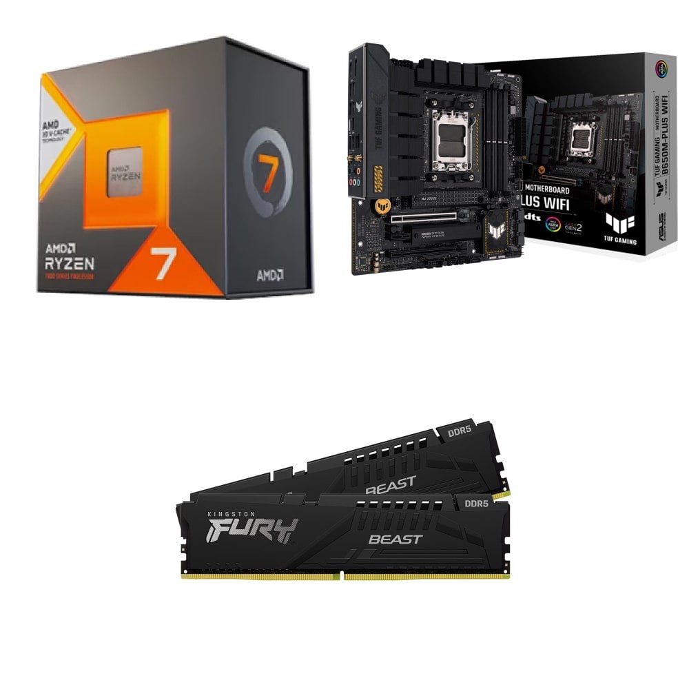 ☆期間限定★ AMD R7 7800X3D+華碩 TUF GAMING B650M-PLUS WIFI M-ATX主機板+金士頓 FURY Beast 獸獵者 D5 6000 16G*2 CL36 KF560C36BBE2K2-32 (支援XMP3.0、EXPO) 黑 記憶體