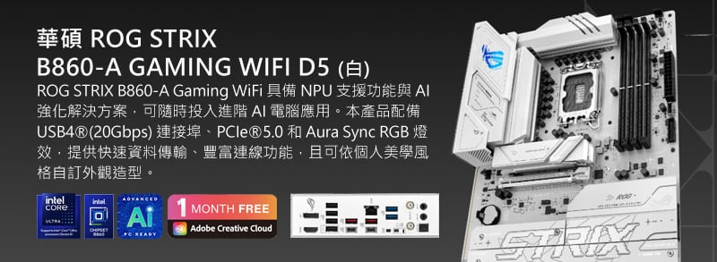 - 主機板:華碩 ROG STRIX B860-A GAMING WIFI D5 白