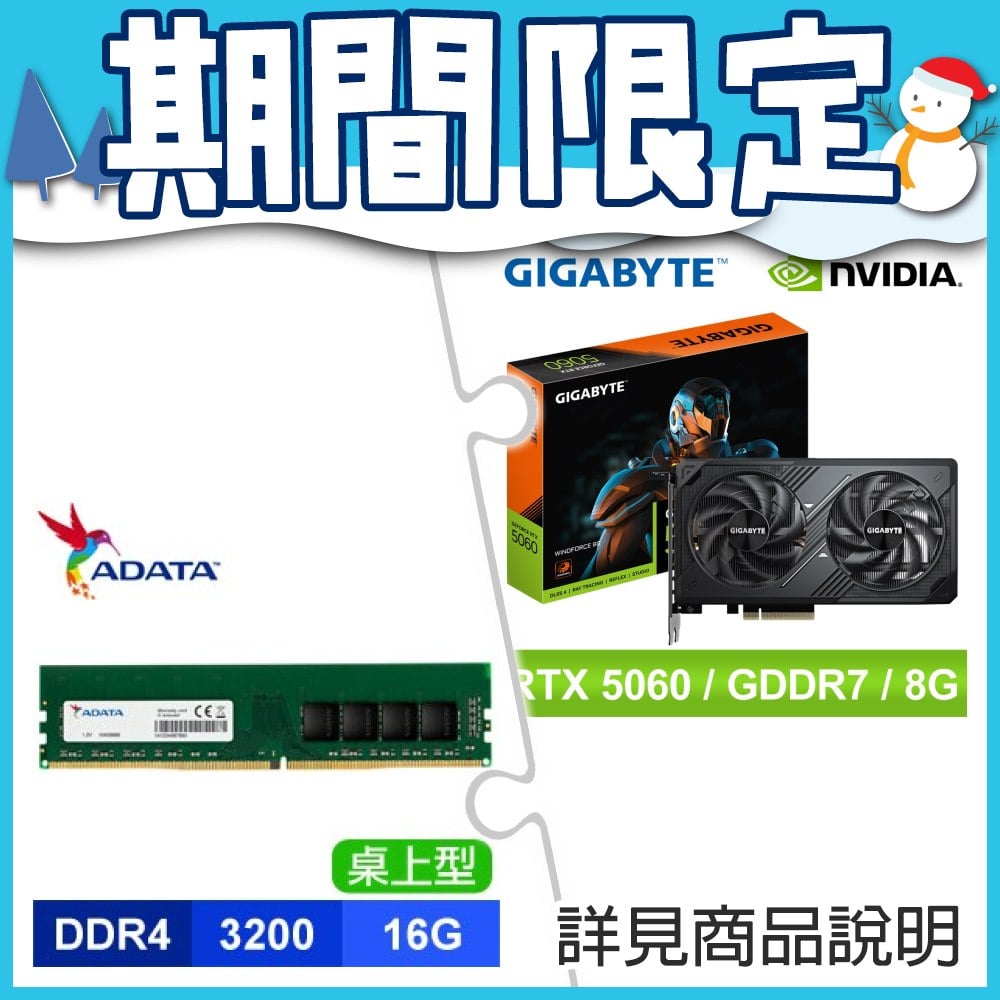 ☆期間限定★ 技嘉 RTX 5060 WINDFORCE 8G 顯示卡+威剛 DDR4-3200 16G 記憶體