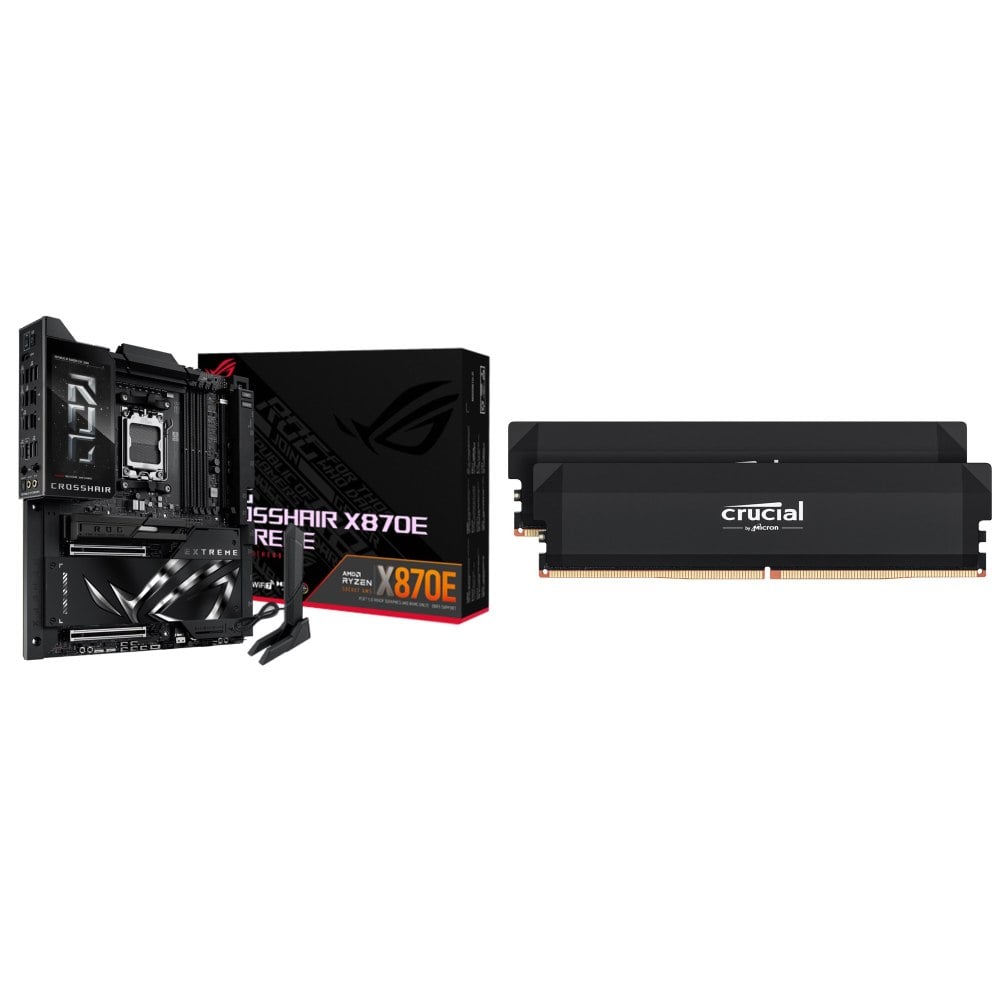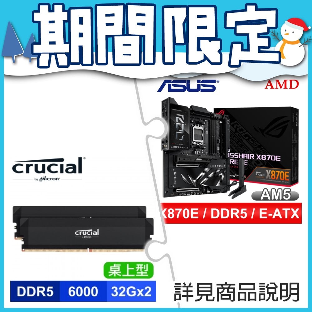☆期間限定★ 華碩 ROG CROSSHAIR X870E EXTREME E-ATX主機板+美光 Crucial PRO DDR5 6000 64G (32G*2)黑 記憶體