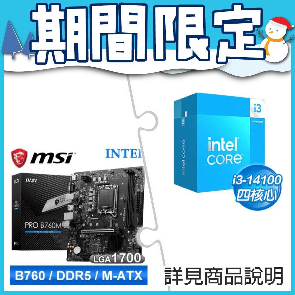 ☆期間限定★ i3-14100+微星 PRO B760M-E D5 M-ATX主機板
