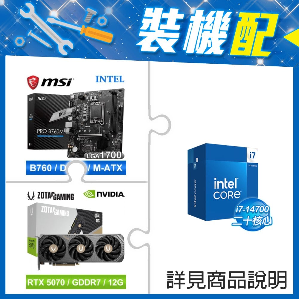 ☆裝機配★ i7-14700+微星 PRO B760M-E D5 MATX主機板+索泰 RTX 5070 SOLID OC 12G 顯示卡