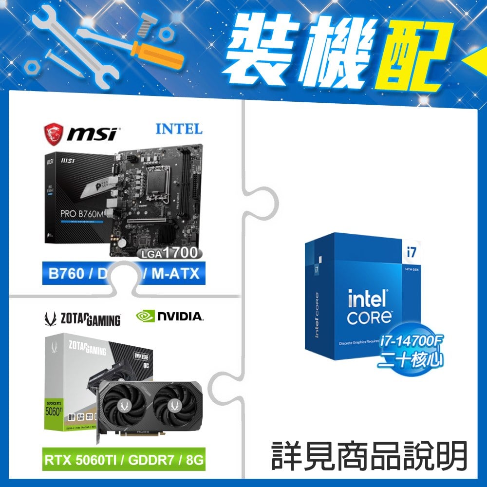 ☆裝機配★ i7-14700F+微星 PRO B760M-E D5 MATX主機板+索泰 RTX 5060 TI 8GB Twin Edge OC 顯示卡