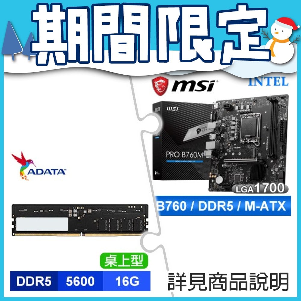 ☆期間限定★ 微星 PRO B760M-E D5 M-ATX主機板+威剛 DDR5-5600 16G 記憶體