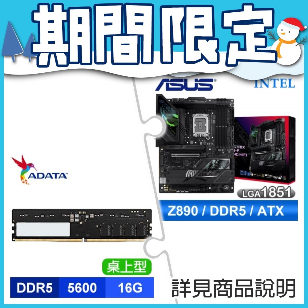 ☆期間限定★ 華碩 ROG STRIX Z890-F GAMING WIFI D5 ATX+威剛 DDR5-5600 16G 記憶體(X2)