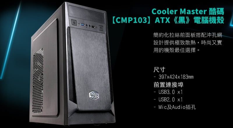 - 電腦機殼:酷碼 CMP103 ATX 黑