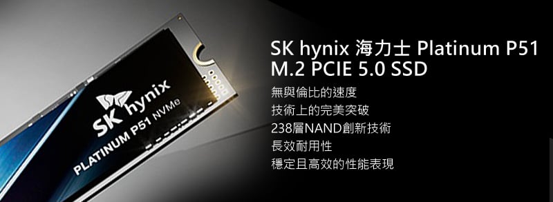 - 固態硬碟:海力士 Platinum P51 1TB M.2 PCIE 5.0 SSD