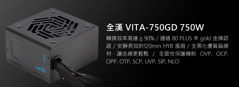 - 電源供應器:全漢 VITA-750GD (MIT) 750W