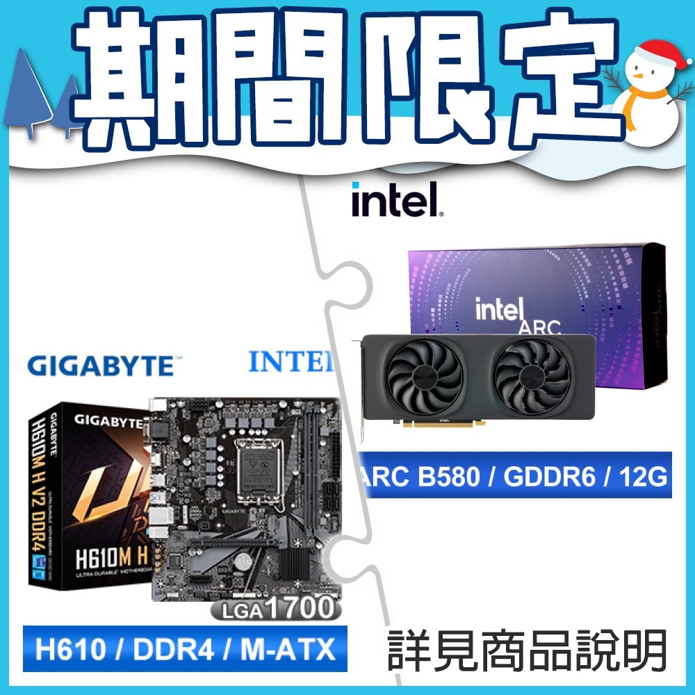 ☆期間限定★ Intel Arc B580 12G 20 Core 顯示卡+技嘉 H610M H V2 D4 M-ATX主機板