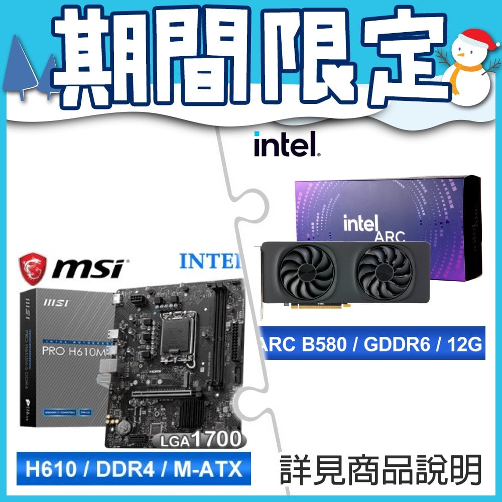☆期間限定★ Intel Arc B580 12G 20 Core 顯示卡+微星 PRO H610M-S D4 M-ATX主機板