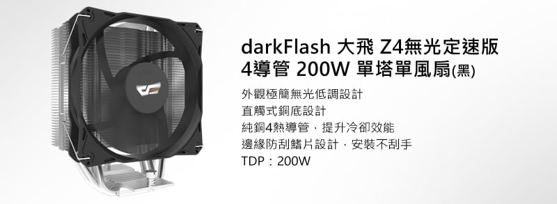 - CPU散熱風扇 :大飛 Z4無光定速版 4導管 200W 單塔單風扇