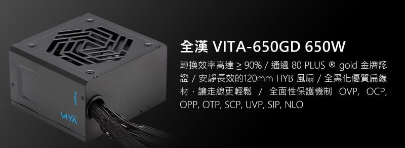 - 電源供應器: VITA-650GD(MIT) 650W 金牌