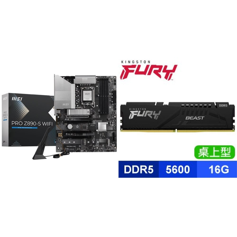 ☆期間限定★ 微星 PRO Z890-S WIFI D5 ATX主機板+金士頓 獸獵者 D5 5600 16G CL36 黑 記憶體★送PC-cillin 2025 雲端版 一年一台 隨機版