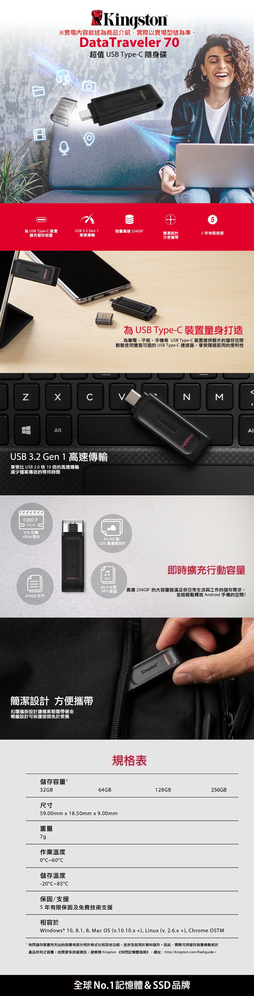 Kingston 金士頓 DT70/128GB USB 3.2 Gen1 Type-C 隨身碟