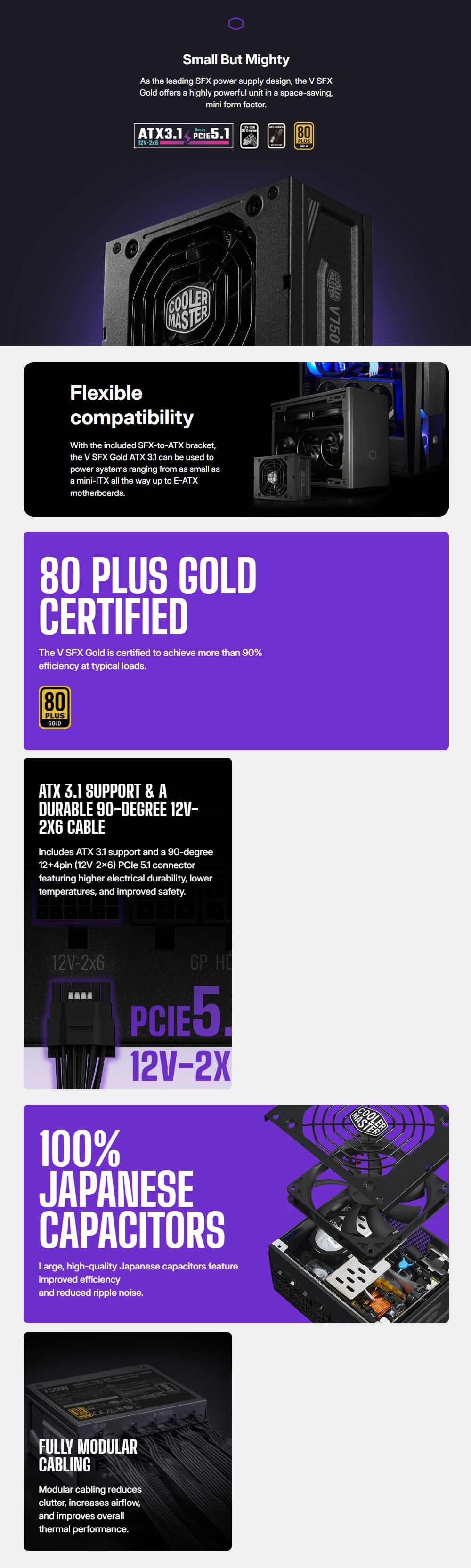 Cooler Master 酷碼 V SFX Gold 750W 金牌 全模組 ATX3.1 PCIe 5.1 電源供應器(10年保)