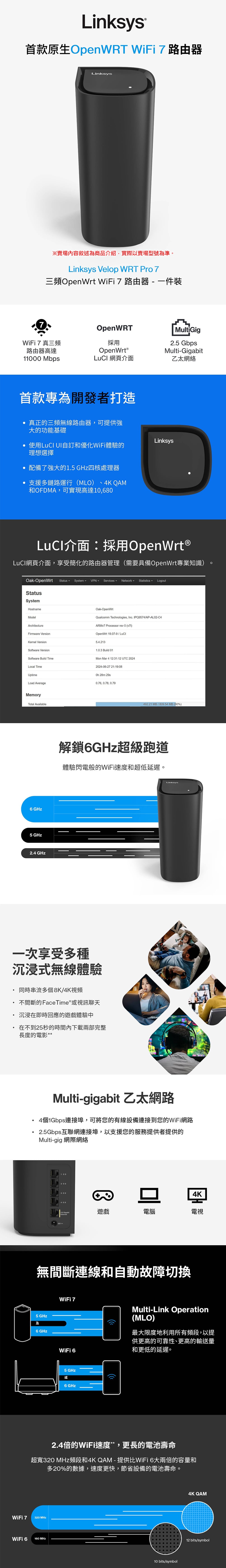 • 專為開發者打造原生Open WRT支援LuCI UI 介面,享受簡化的路由器管理