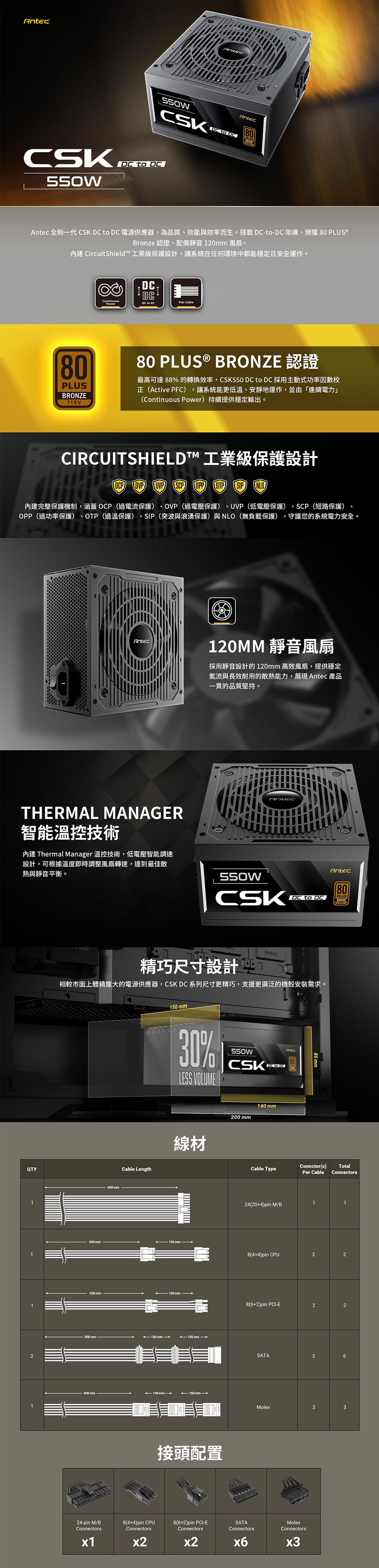 ANTEC 安鈦克 CSK550DC 銅牌 直出 DC-DC 電源供應器(5年保2年換新)