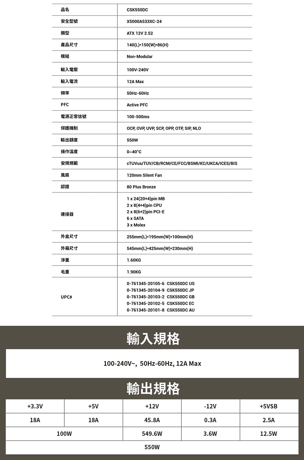 - 80Plus BRONZE 銅牌認證, 超高轉換率