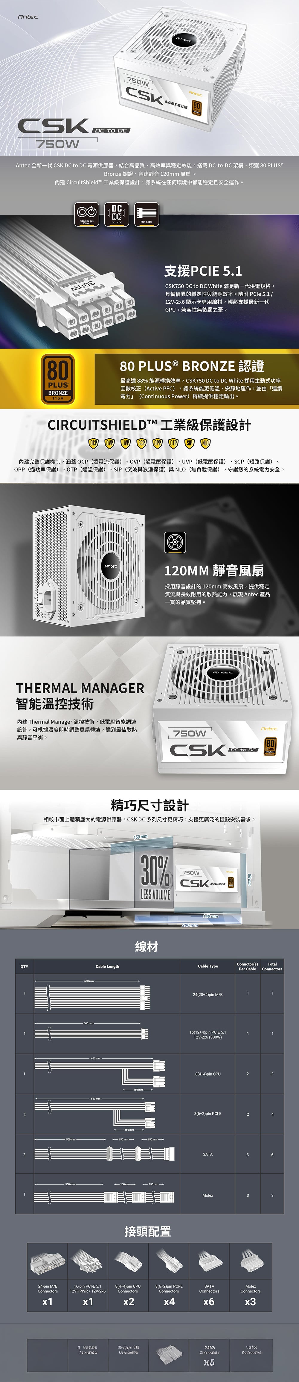 ANTEC 安鈦克 CSK750DC(B) 銅牌 直出 DC-DC PCIe 5.1 電源供應器(5年保2年換新)