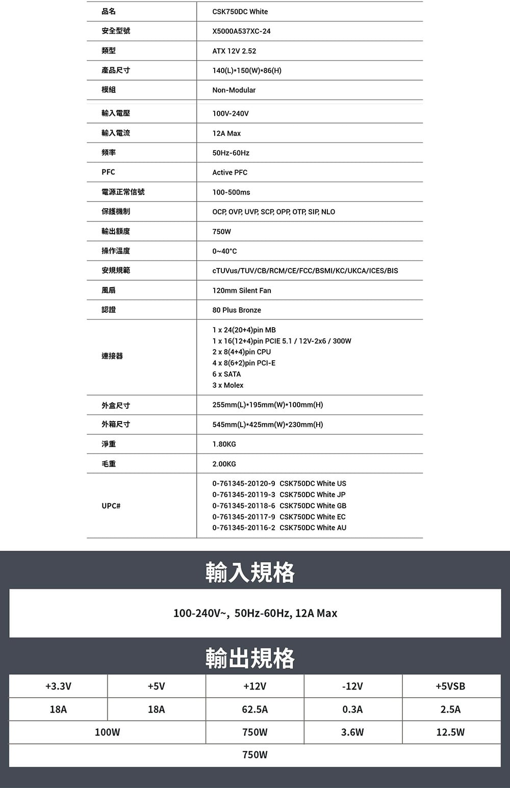 Antec 安鈦克 CSK750DC(W) 銅牌 直出 DC-DC 電源供應器《白》(5年保2年換新)
