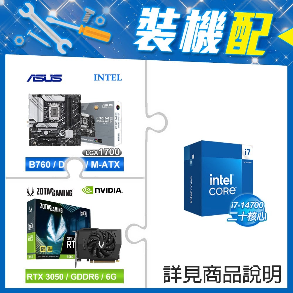 ☆裝機配★ i7-14700+華碩 PRIME B760M-A WIFI-CSM D5 M-ATX主機板+ZOTAC RTX3050 6G GDDR6 Solo 顯示卡