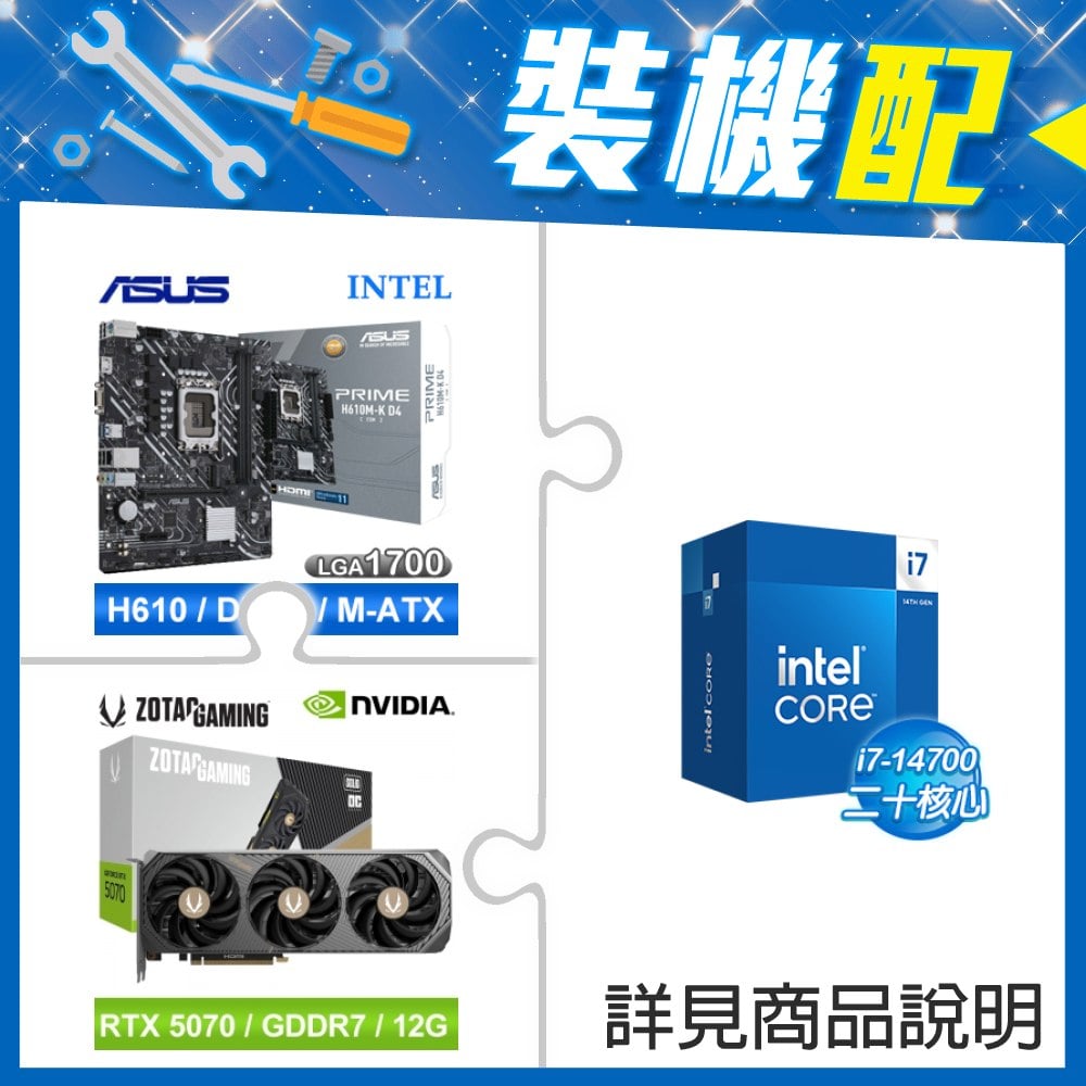 ☆裝機配★ i7-14700+華碩 PRIME H610M-K D4-CSM M-ATX主機板+索泰 RTX 5070 SOLID OC 12G 顯示卡