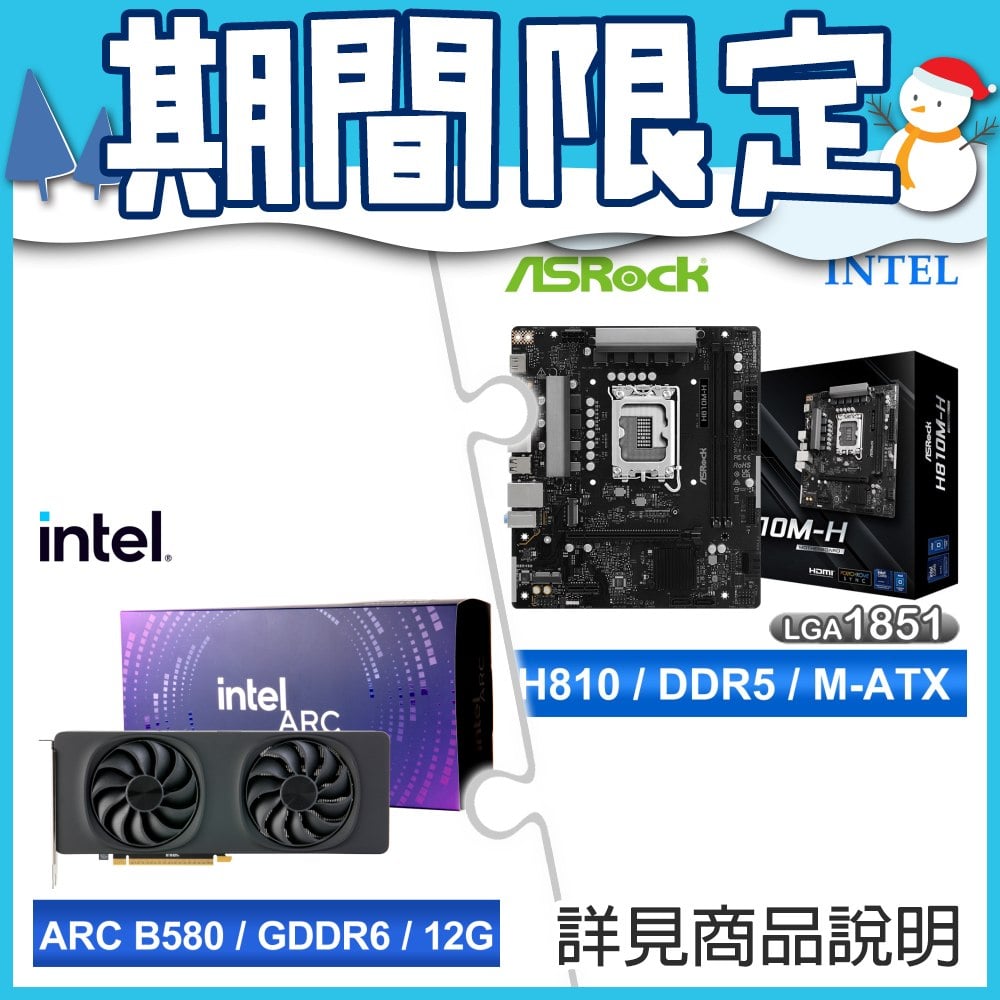 ☆期間限定★ 華擎 H810M-H MATX 主機板+Intel Arc B580 12G 20 Core 顯示卡