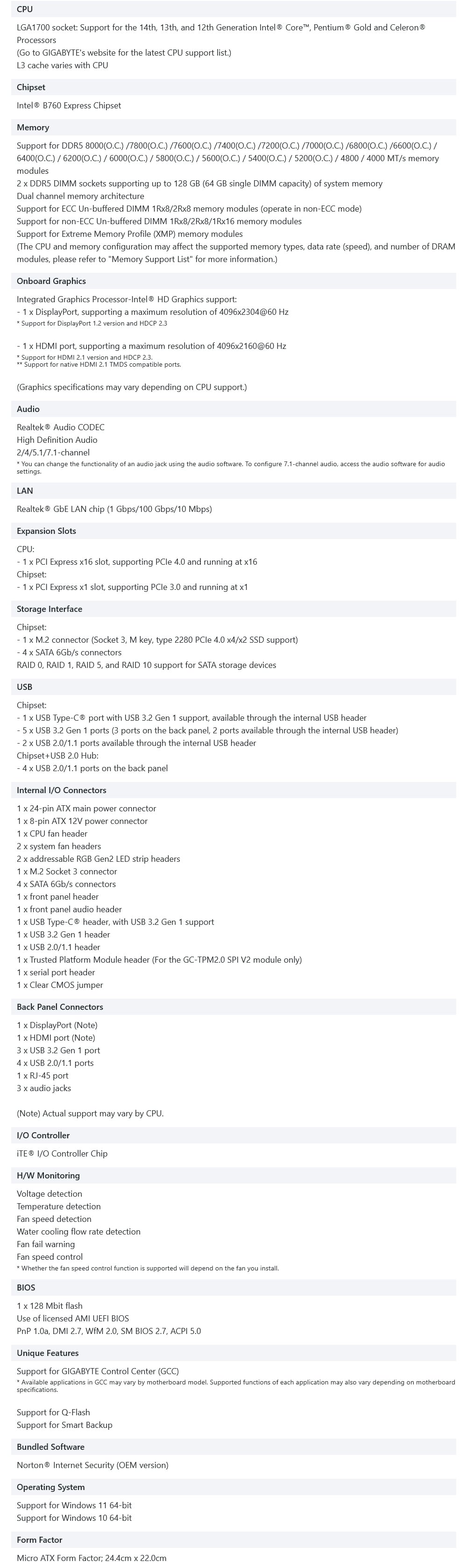 Gigabyte 技嘉 B760M E D5 LGA1700主機板(MATX/3+1年保)