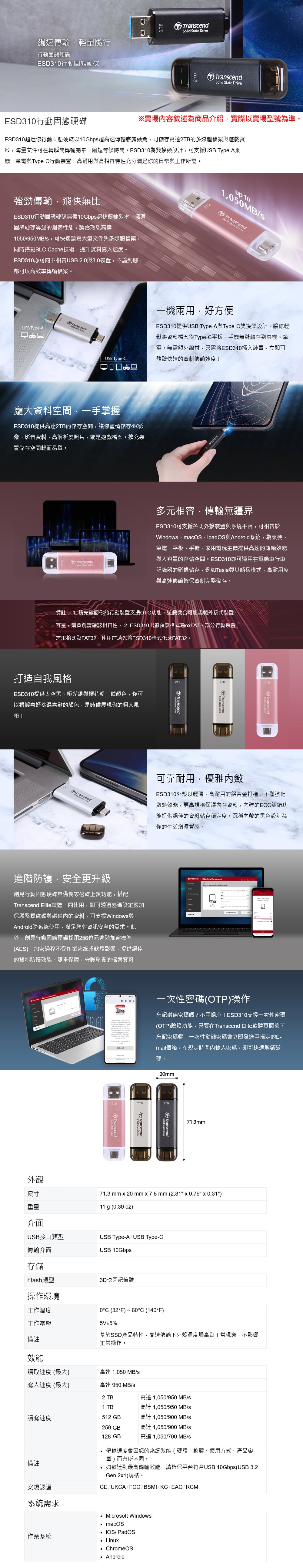 - [贈] 創見 ESD310C 256G USB 3.2 外接SSD
