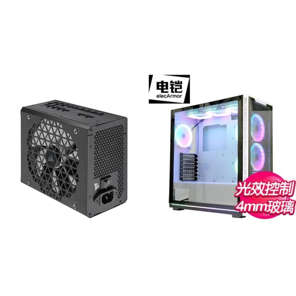 ☆期間限定★ 海盜船 RM1000x SHIFT 金牌全模組ATX3.1電源供應器+電鎧 DK103 A.RGB 玻璃透側 E-ATX機殼 白