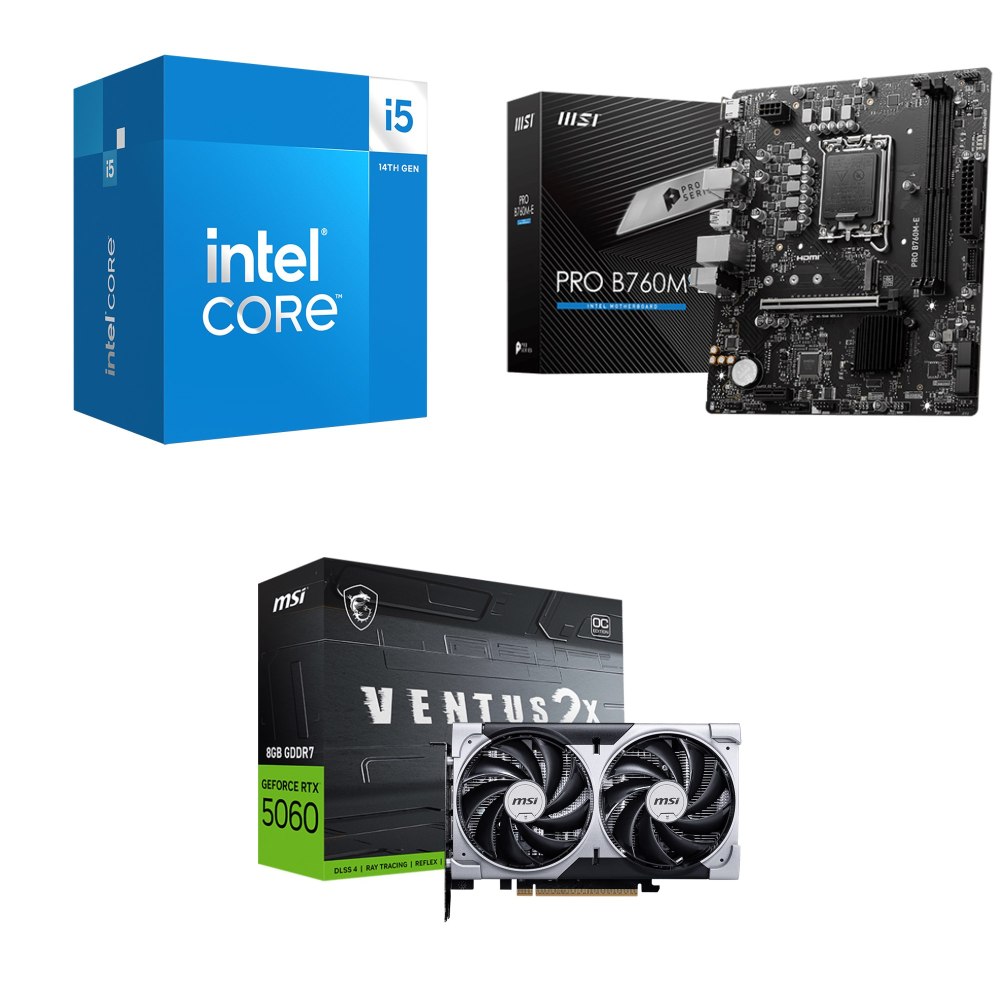 ☆期間限定★ i5-14400+微星 PRO B760M-E D5 M-ATX主機板+微星 RTX 5060 8G VENTUS 2X OC 顯示卡