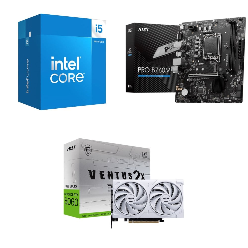 ☆期間限定★ i5-14400+微星 PRO B760M-E D5 M-ATX主機板+微星 RTX 5060 8G VENTUS 2X OC WHITE 顯示卡