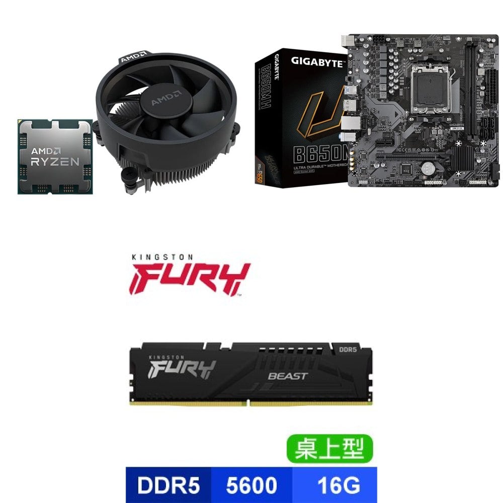 ☆期間限定★ AMD R5 7500F MPK+技嘉 B650M H M-ATX主機板+金士頓 獸獵者 D5 5600 16G CL36 黑 記憶體