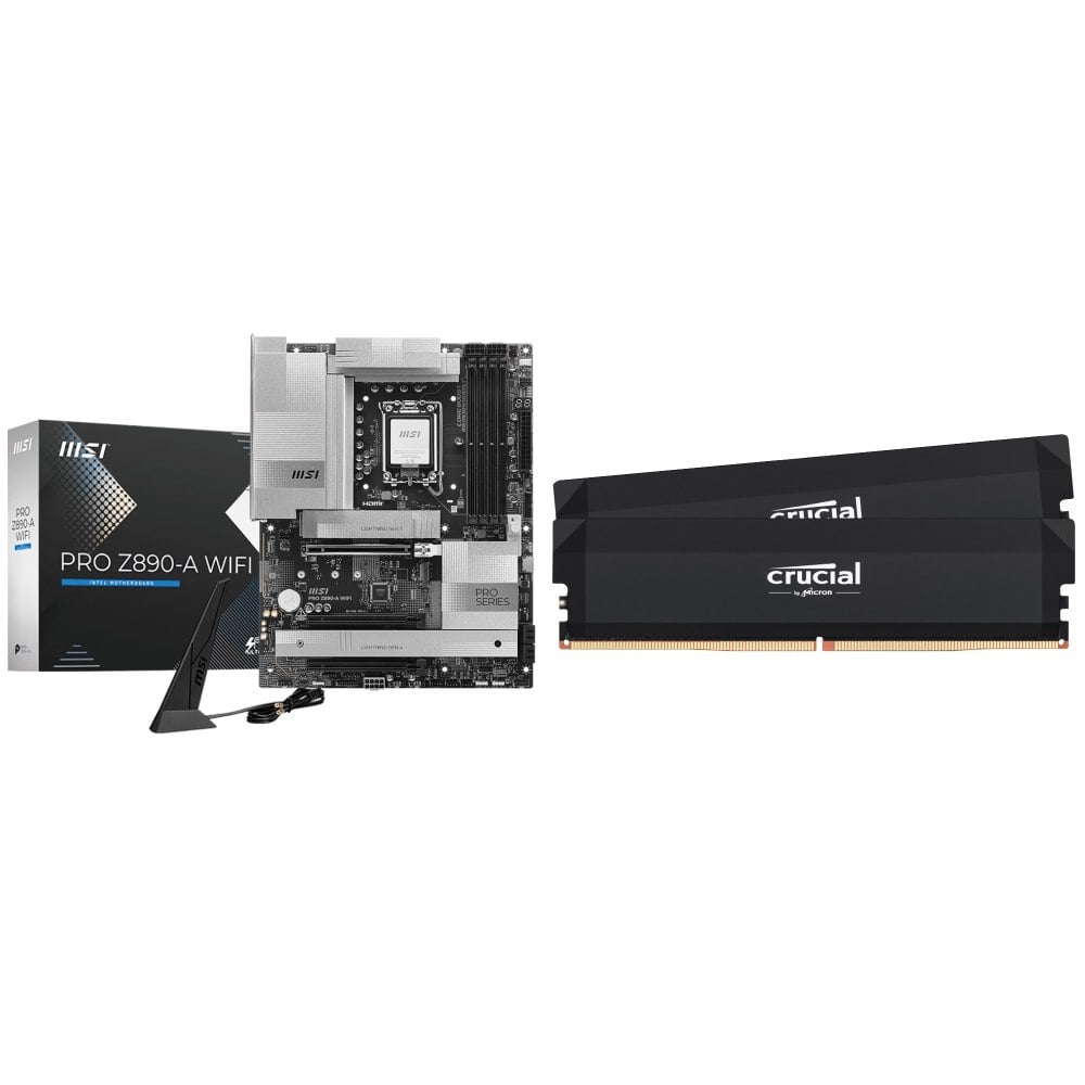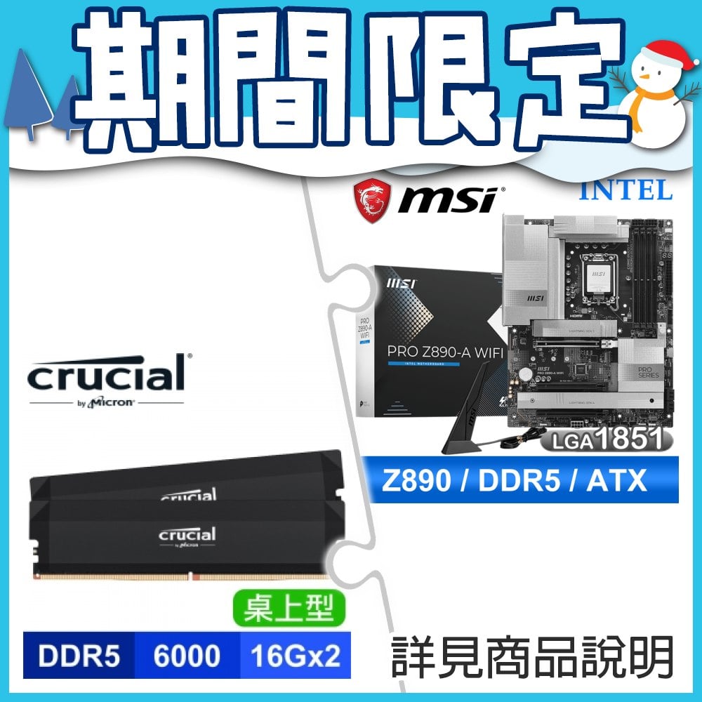☆期間限定★ 微星 PRO Z890-A WIFI D5 ATX主機板+美光Crucial PRO DDR5-6000 16G*2黑 記憶體